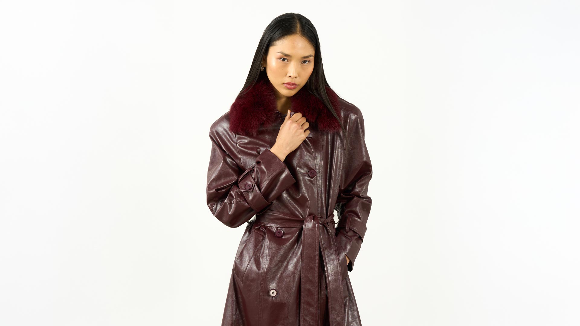 Zarif flok desenleriyle öne çıkan bu lacivert trençkot, klasik silueti modern bir dokunuşla buluşturuyor. Şıklığı ve asaleti bir arada sunan özel bir parça.