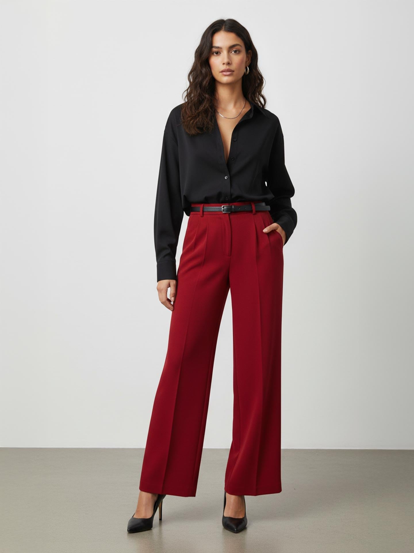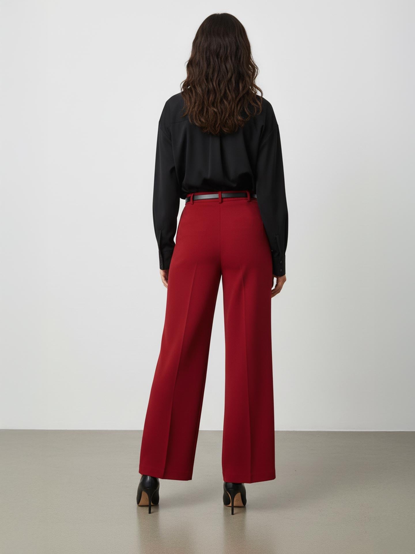 Pileli Palazzo Pantolon Kırmızı, geniş ve rahat kesimiyle hem şık hem de konforlu bir giyim deneyimi sunar. Pile detaylarıyla hareketlilik kazandırılan pantolon, yumuşak kahverengi tonu sayesinde farklı kombinlerde kolayca kullanılabilir.