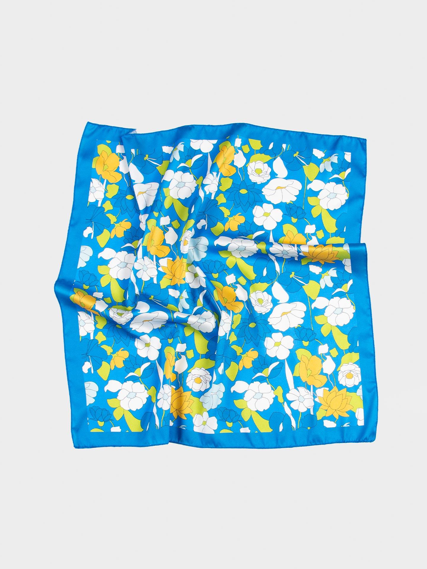 70X70 Saks Çiçek Desen Bandana-Fular