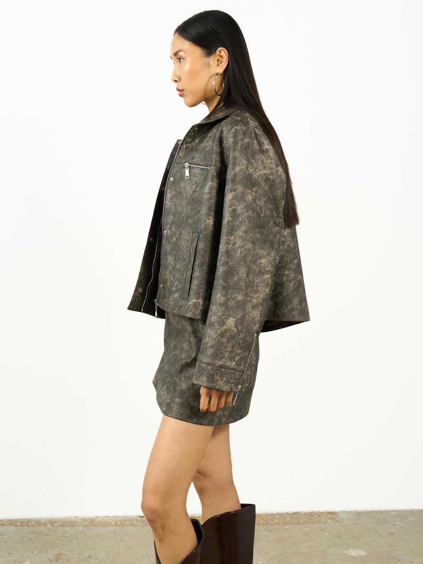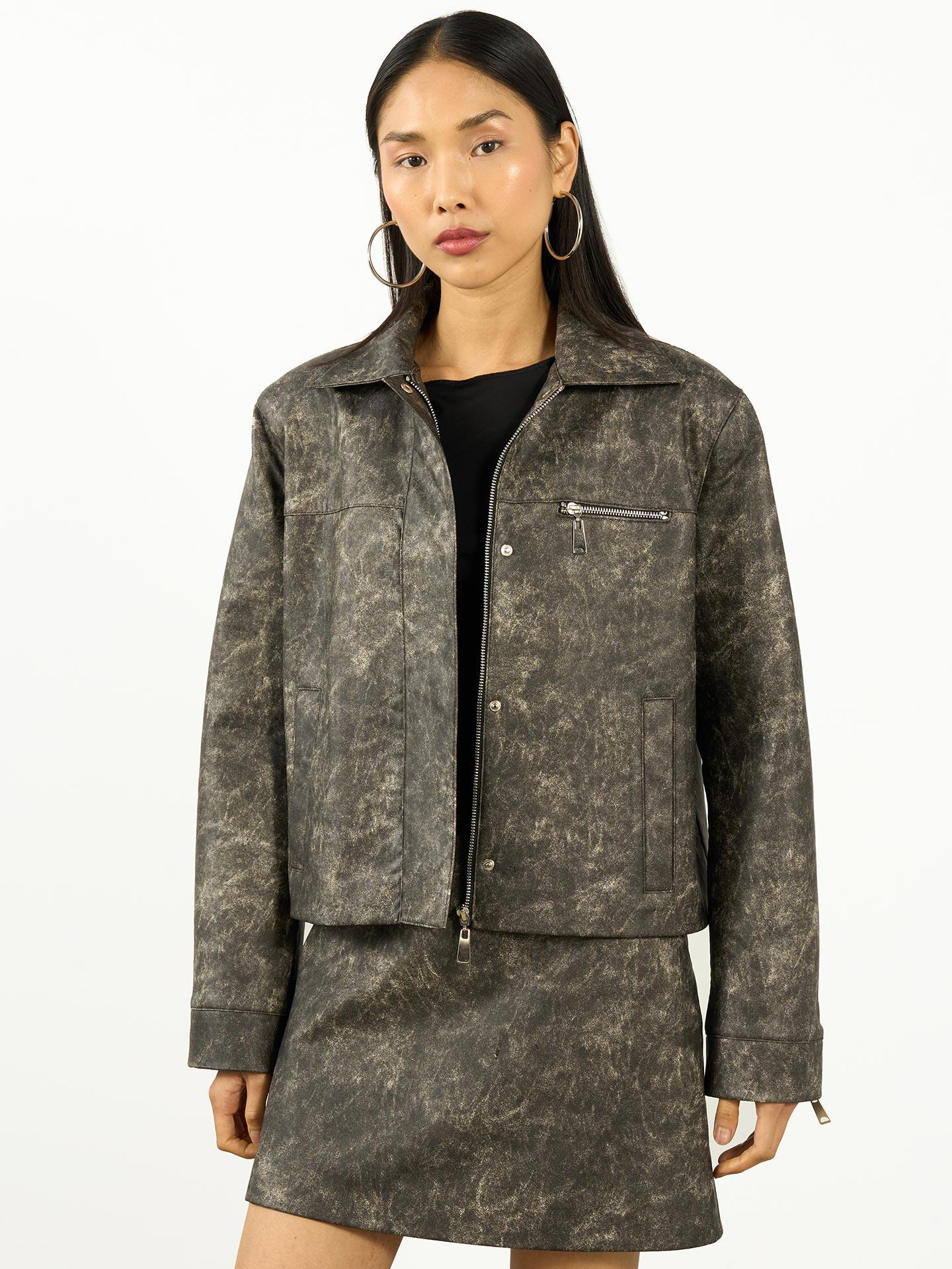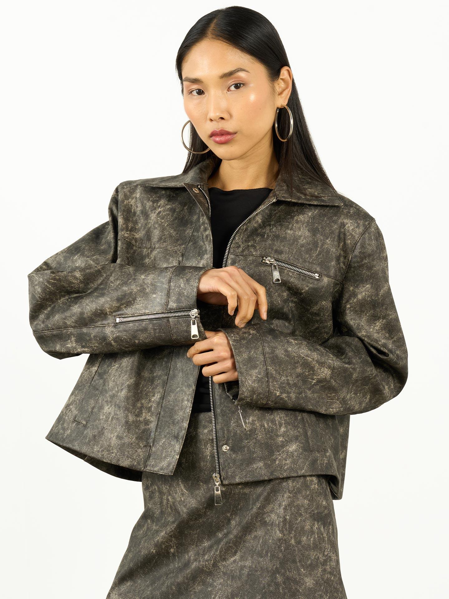 Zamansız bir duruşa sahip bu gri ceket, eskitme deri yaka detayıyla karakter kazanıyor. Modern çizgilerle birleşen vintage dokunuş, sofistike bir görünüm sunuyor.