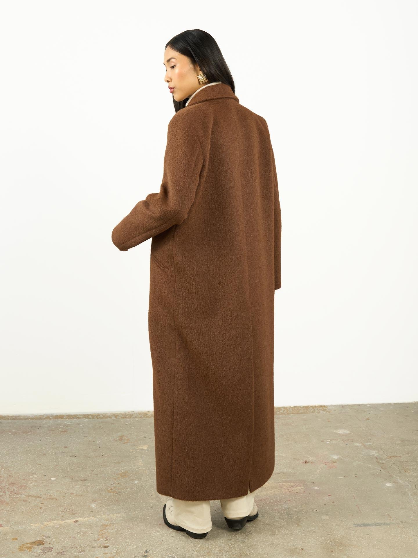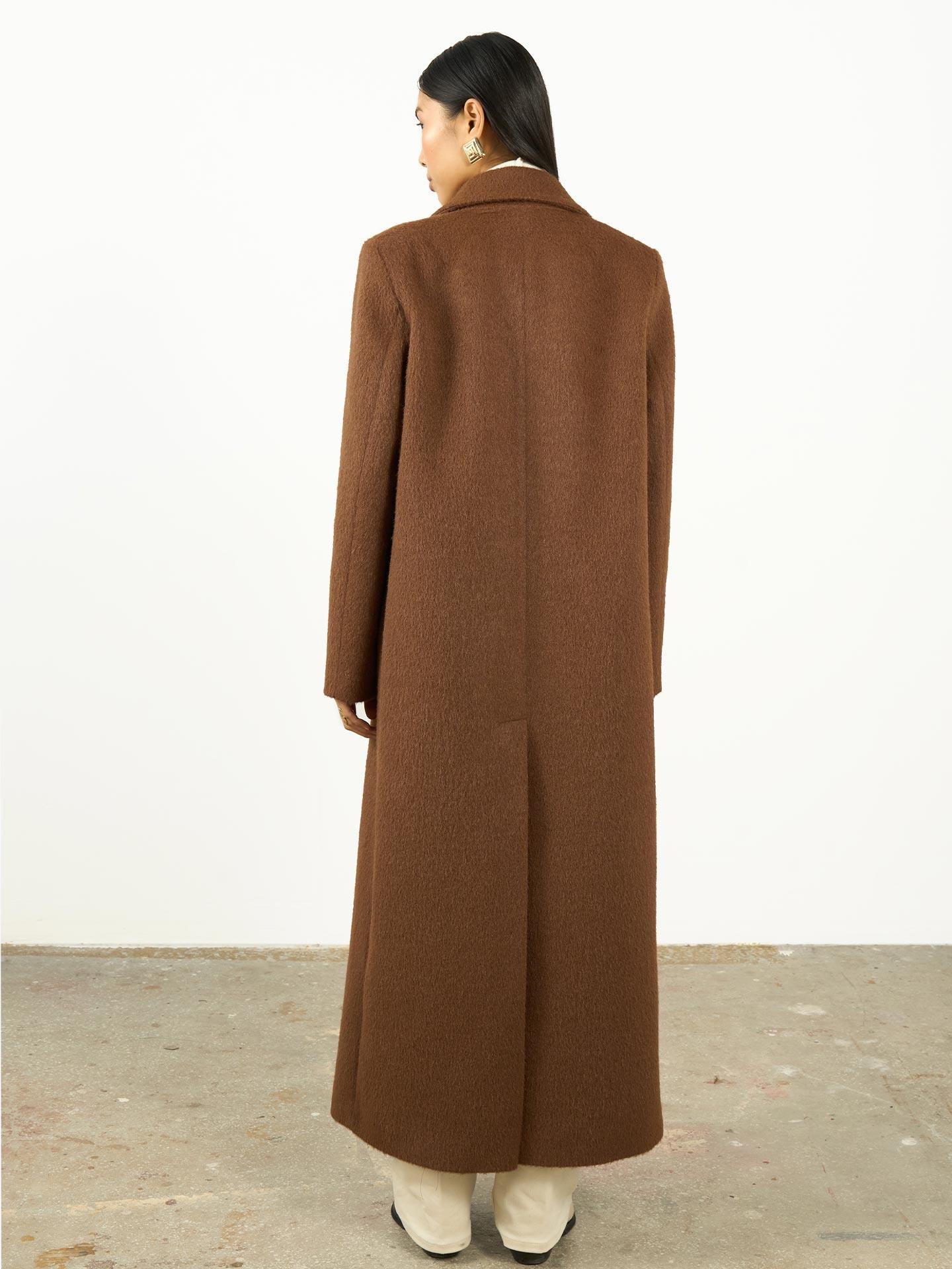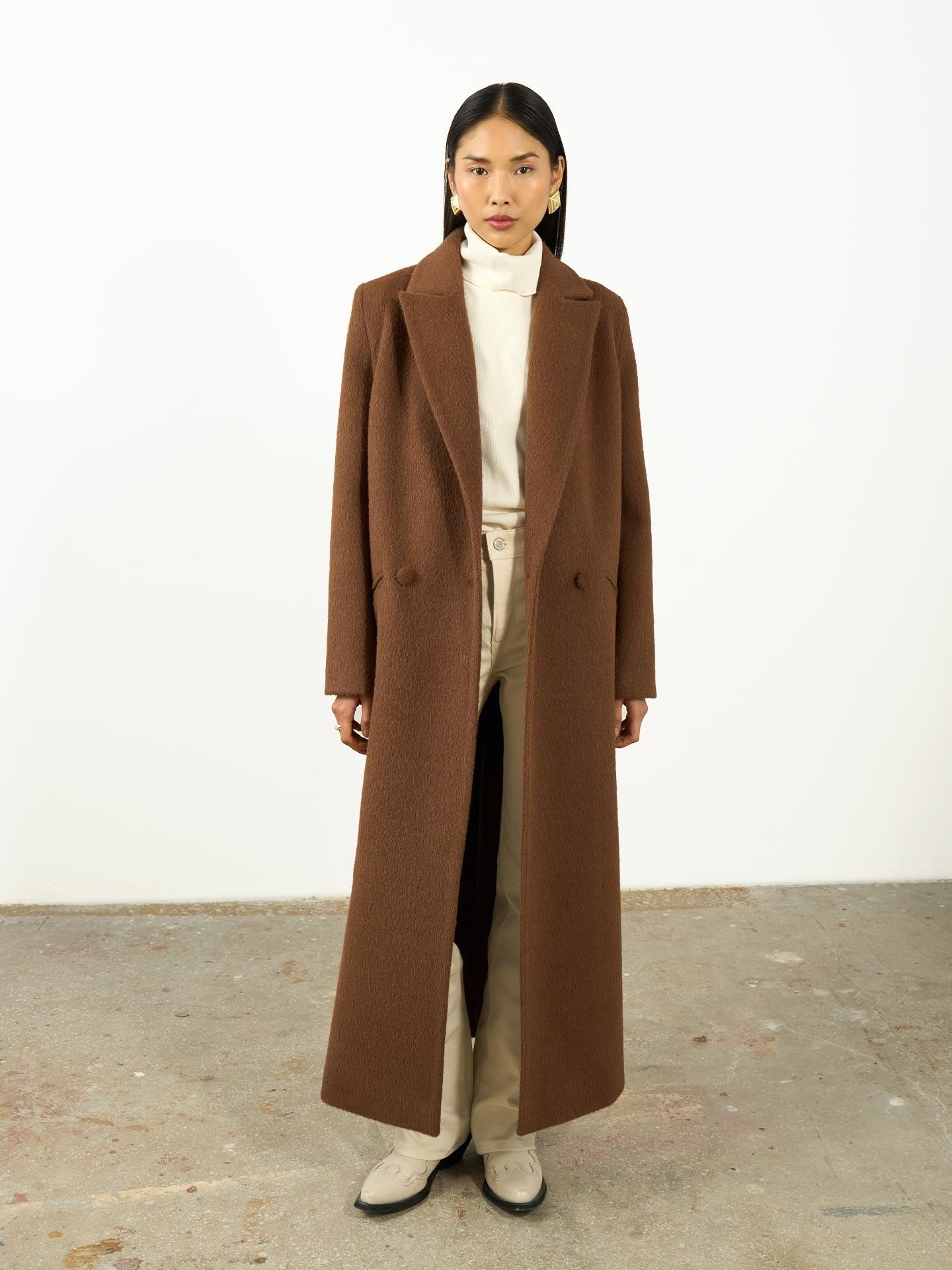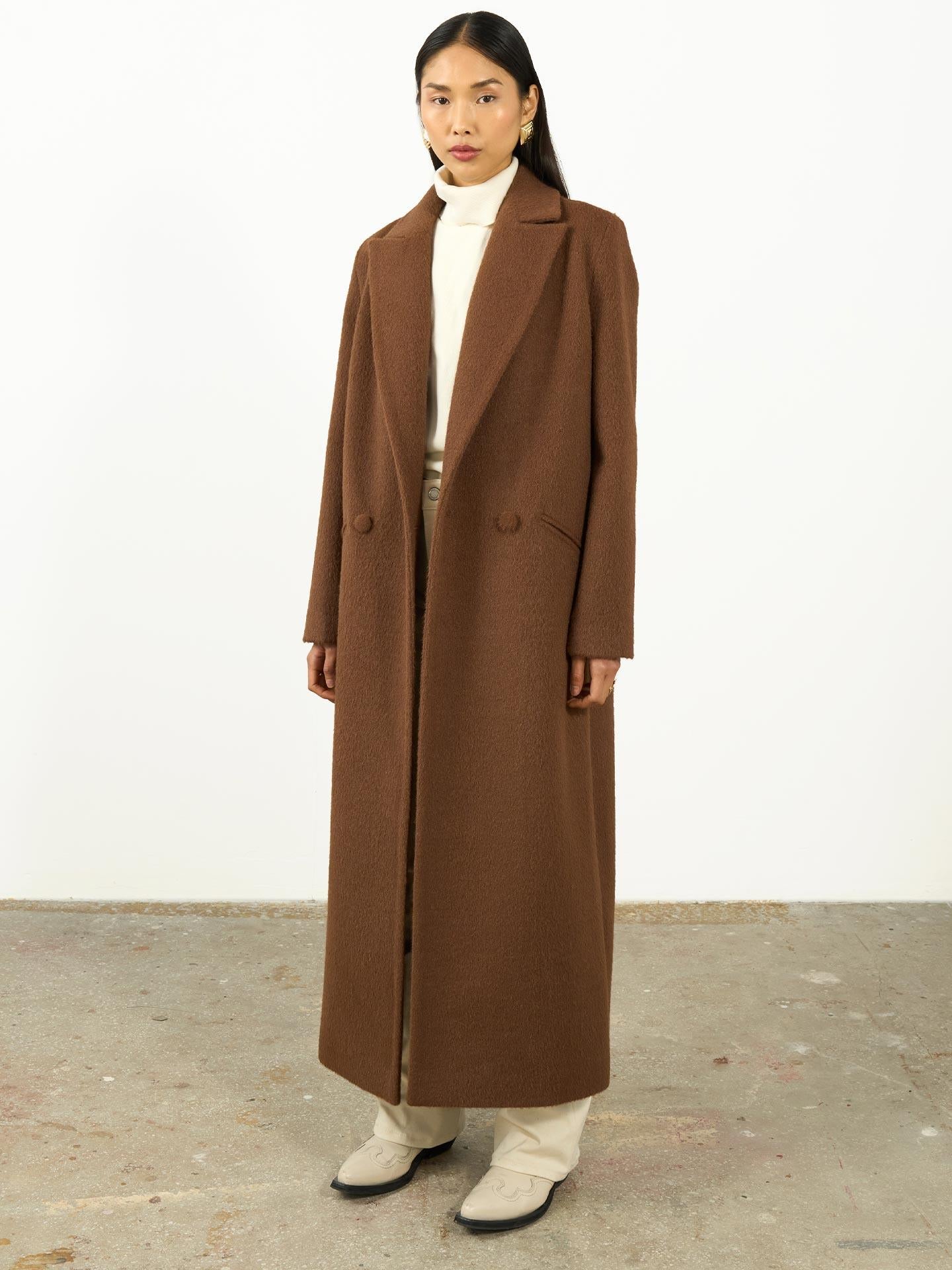 Oversize Kaşe Kruvaze Kaban Kahverengi rengiyle zamansız ve şık bir stil sunar. Geniş kesimi sayesinde rahat ve modern bir duruş sağlarken, büyük düğme detayları tasarıma hareket katar.