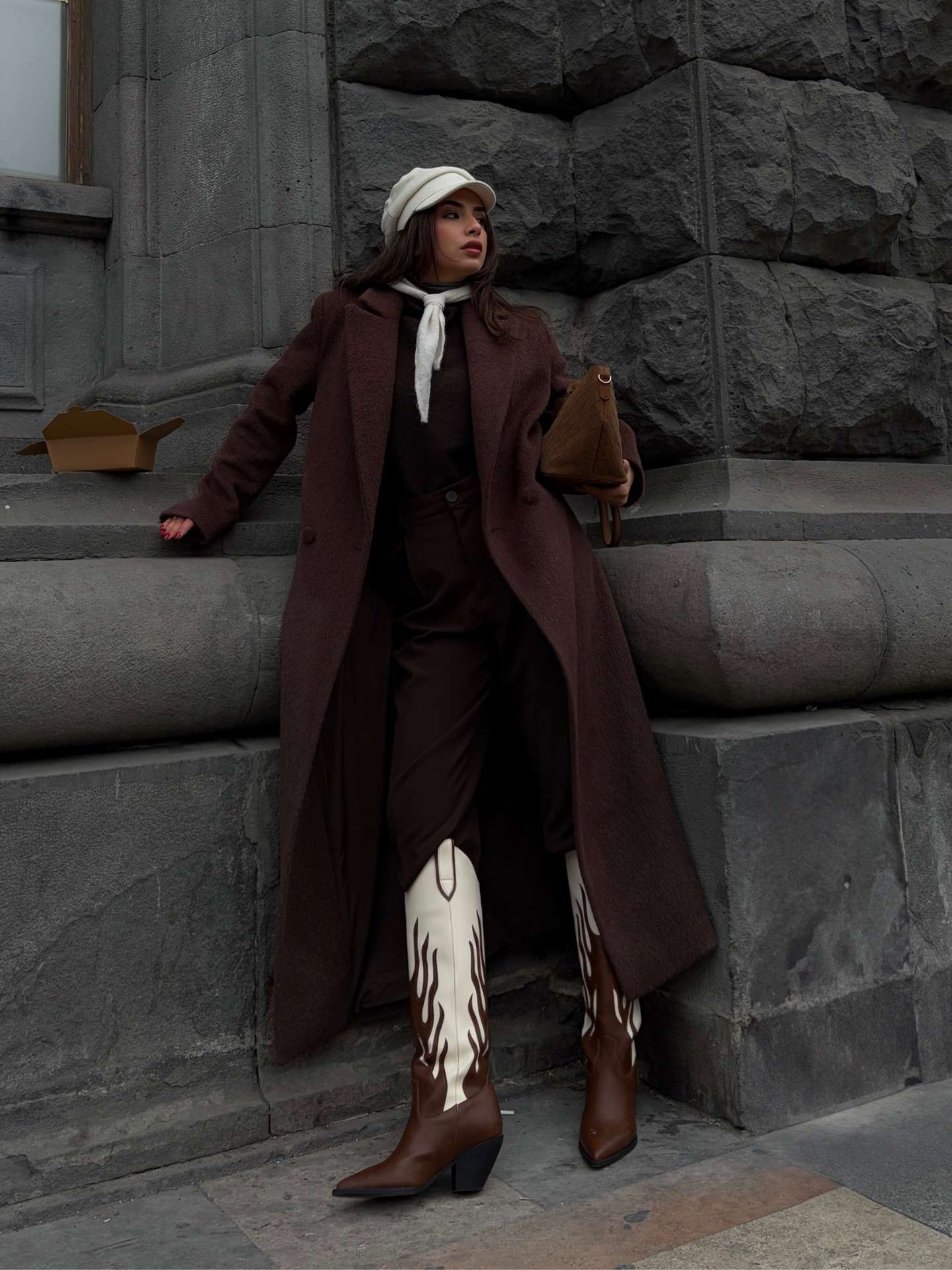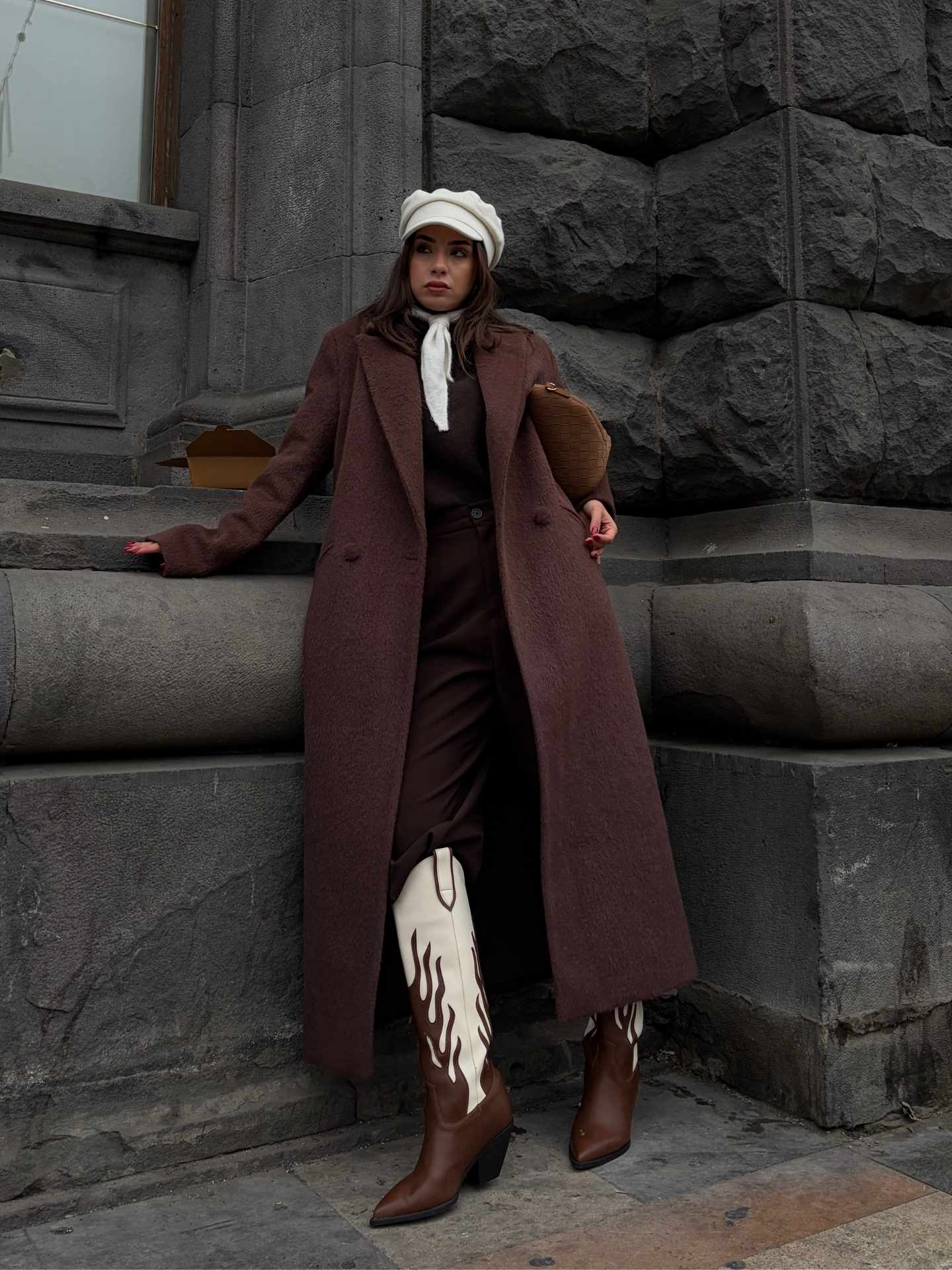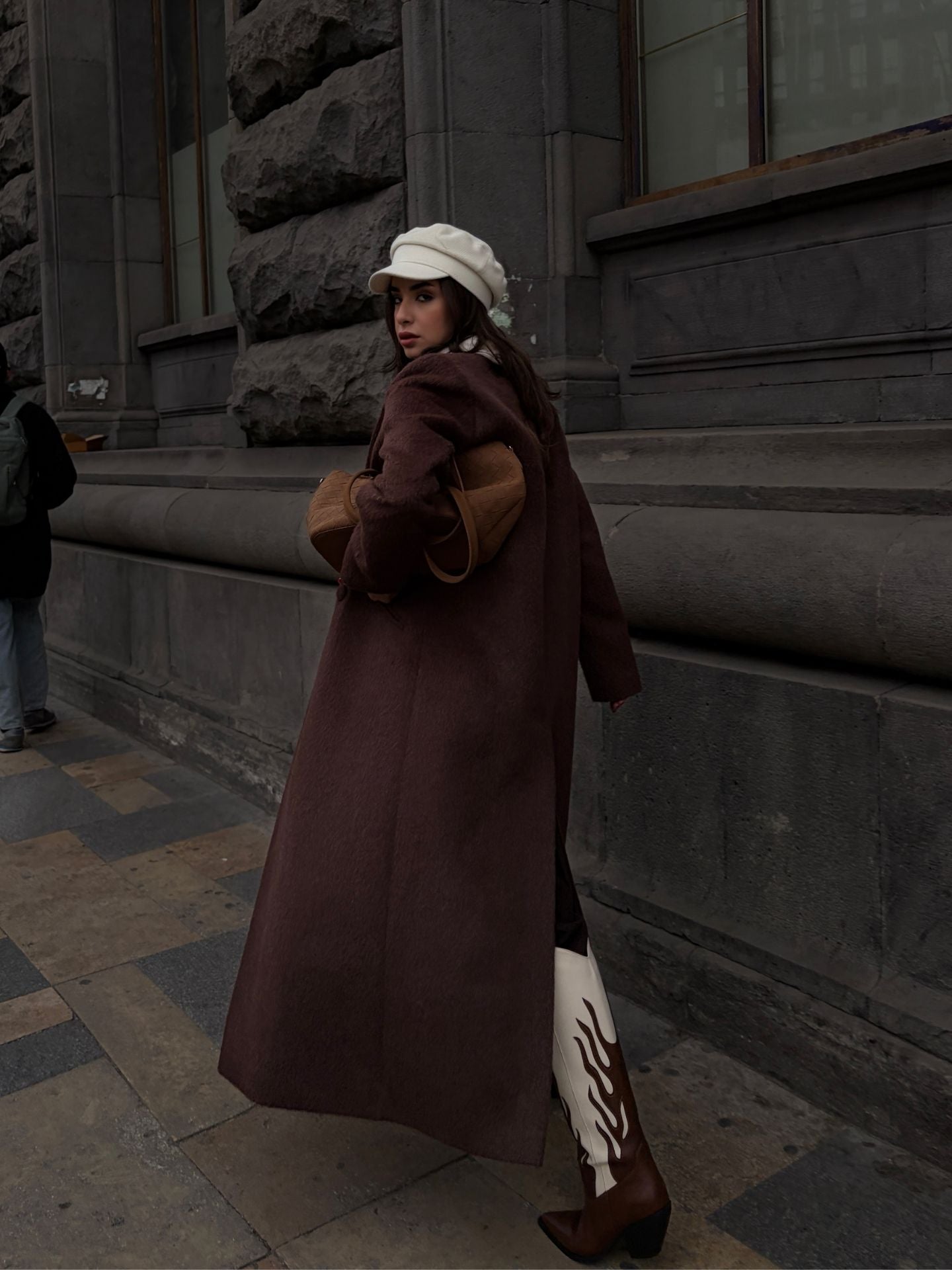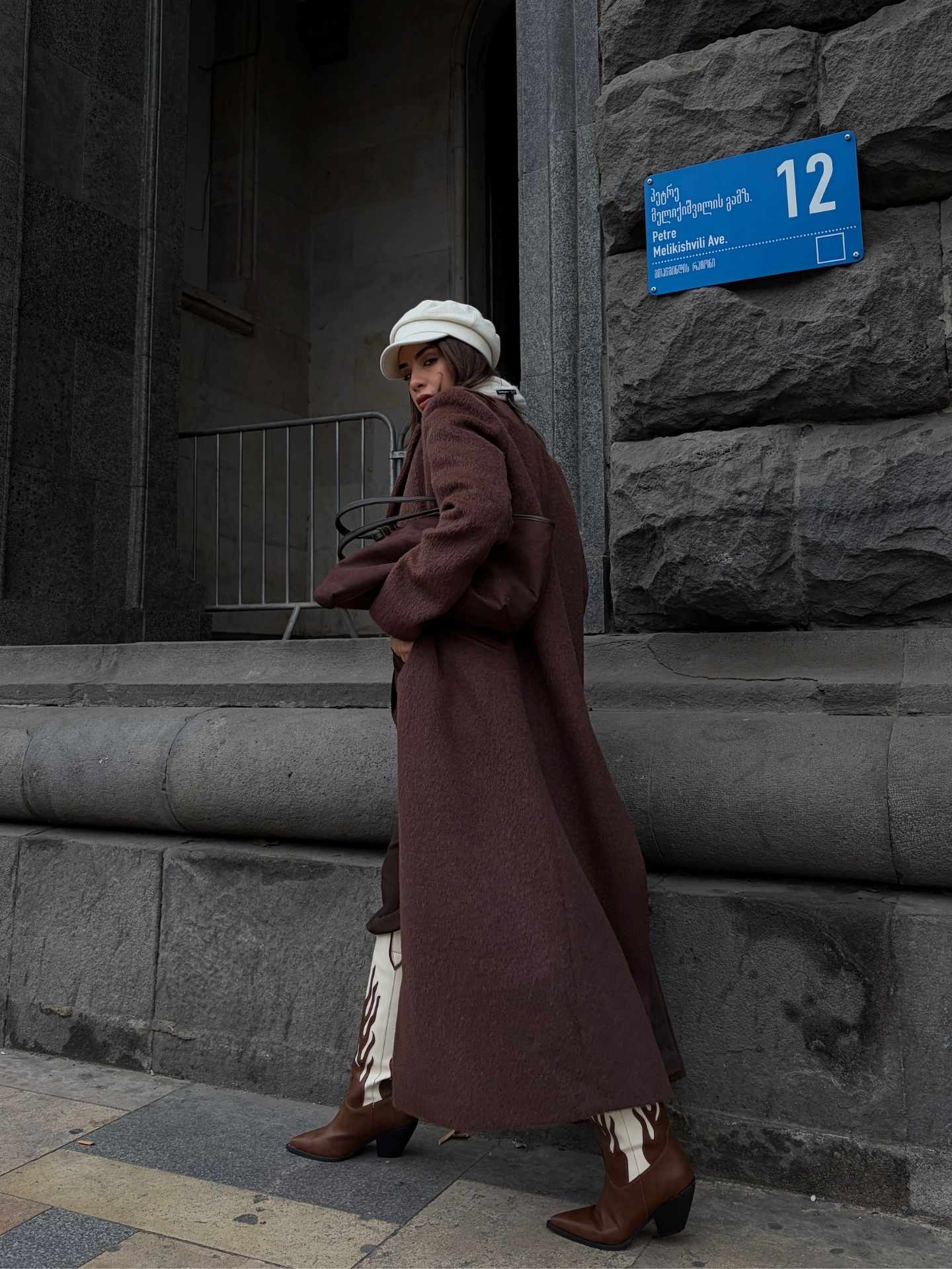Oversize Kaşe Kruvaze Kaban Kahverengi rengiyle zamansız ve şık bir stil sunar. Geniş kesimi sayesinde rahat ve modern bir duruş sağlarken, büyük düğme detayları tasarıma hareket katar.