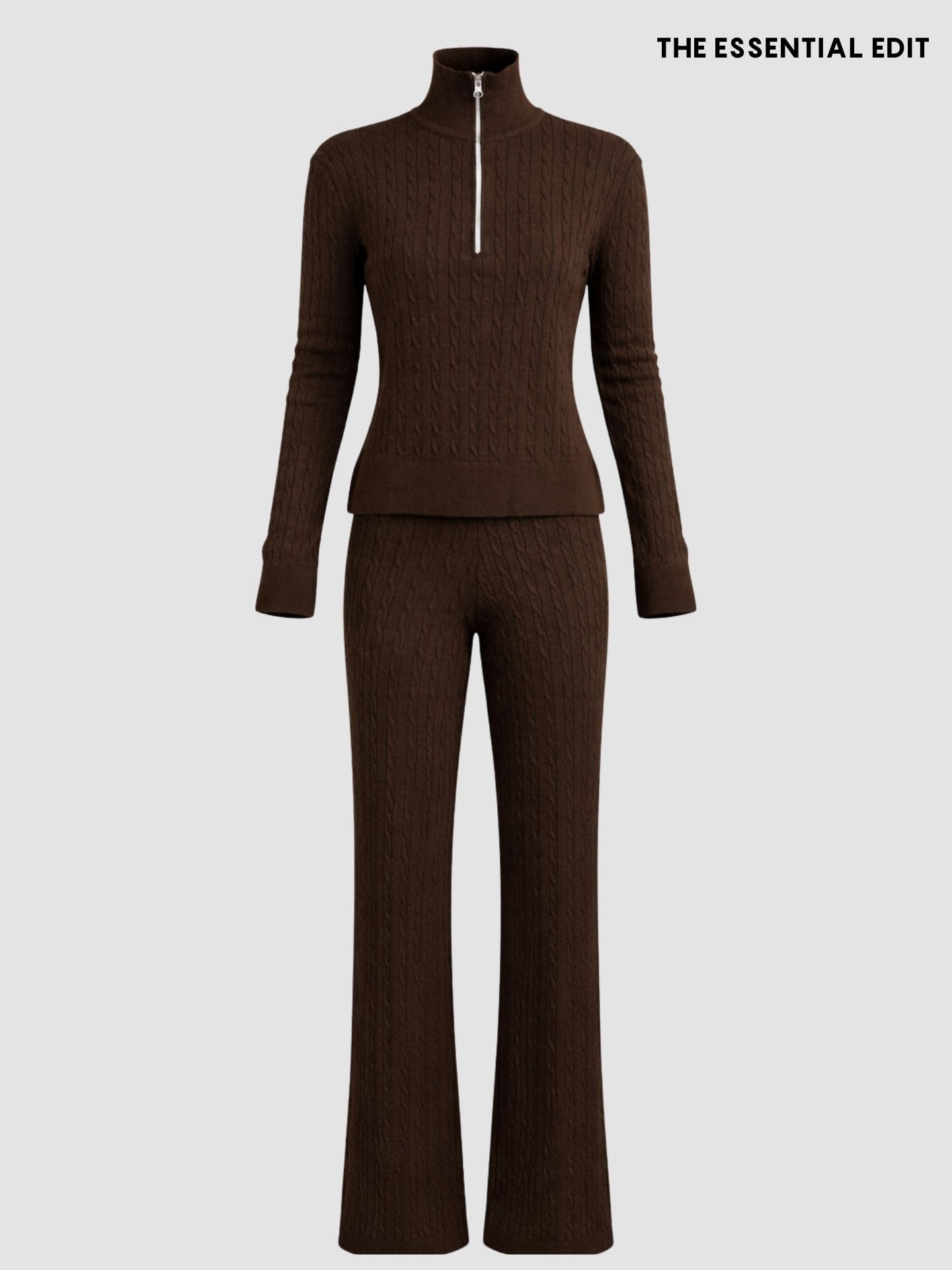 Gün boyu konfor sunarken stilinden ödün vermek istemeyenler için tasarlanan bu triko takım, zamansız ve modern bir siluet sunar. Yumuşak dokulu fitilli örme kumaşı sayesinde hem rahat hem de sofistike bir görünüm sağlar.