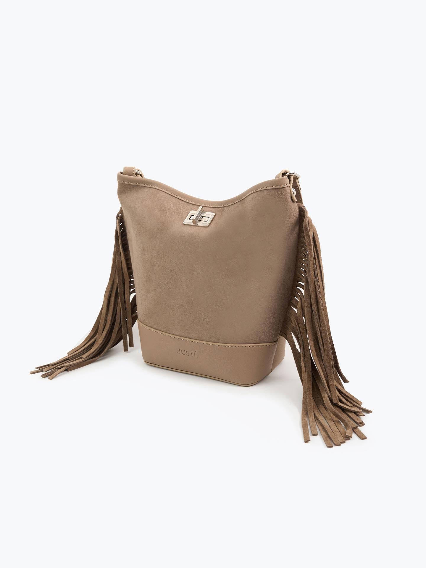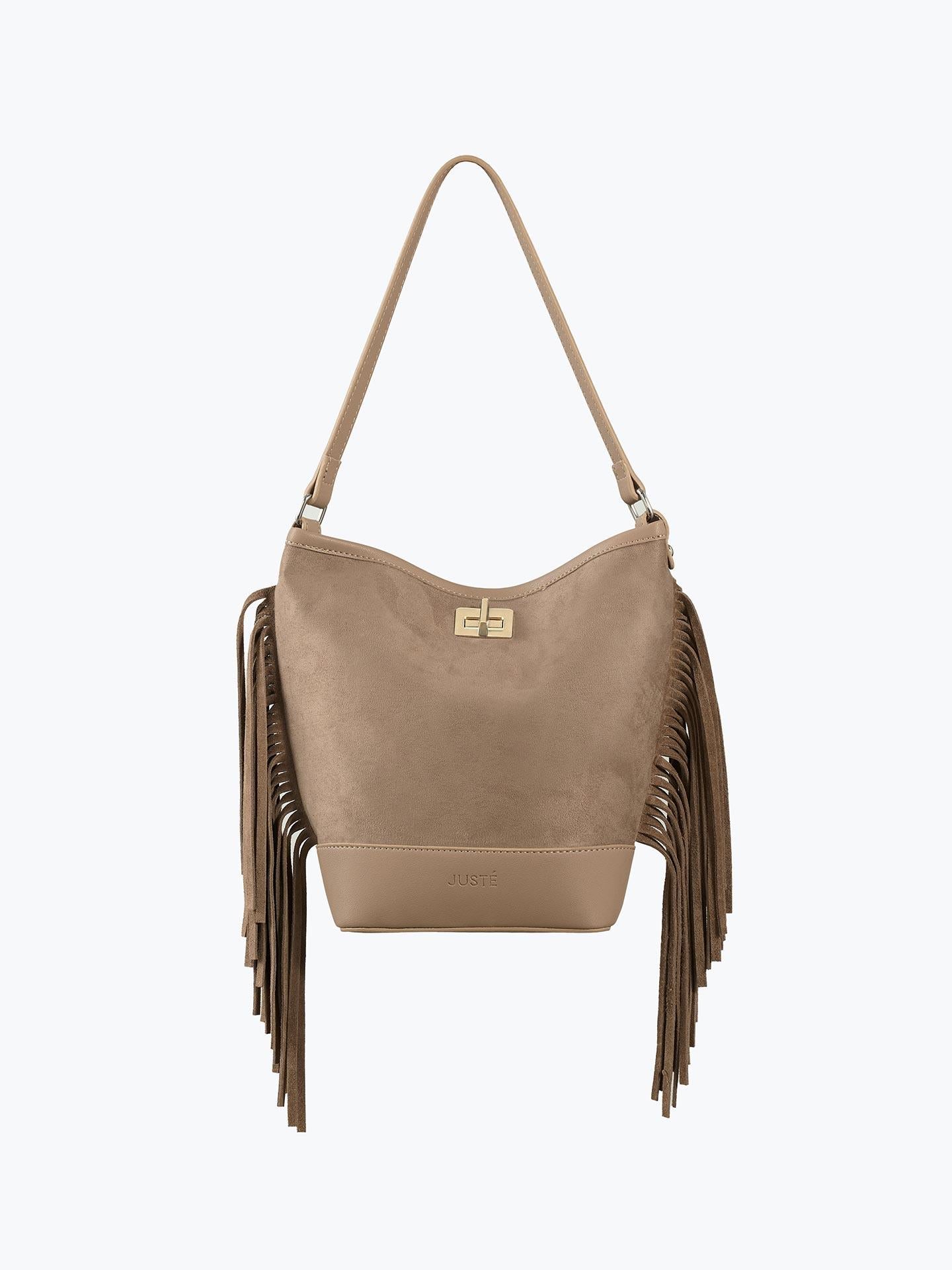Yumuşak süet dokusu ve akıcı siluetiyle Juste’nin zarif dokunuşunu yansıtan süet püsküllü çanta , kusursuz sadeliğiyle stile değer katar.